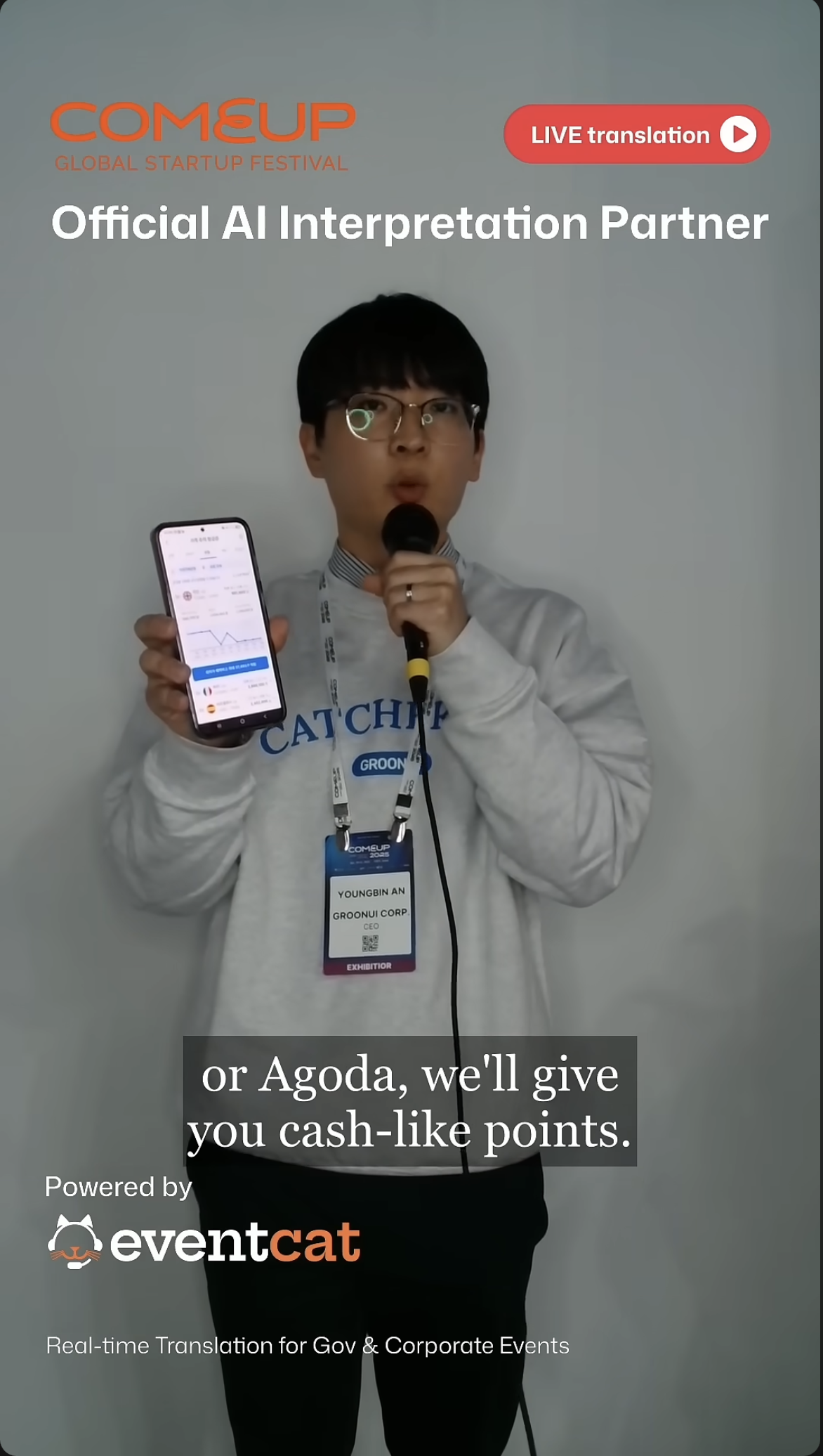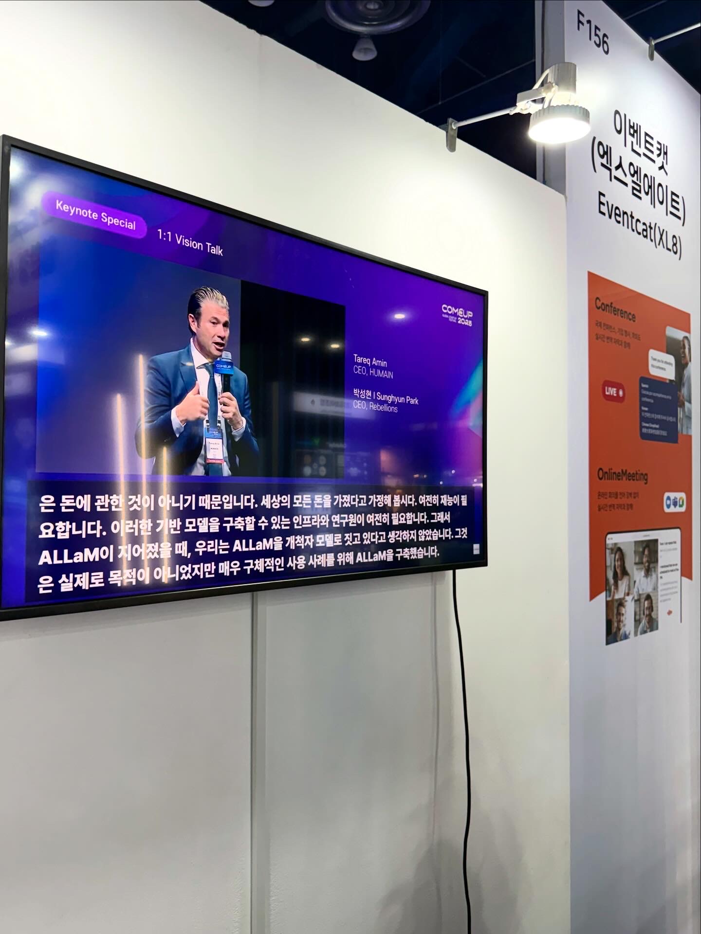 이벤트캣은 COMEUP 2025에서 공식 AI 통·번역 파트너로 참여해, 행사 전반의 실시간 다국어 소통을 책임졌습니다.